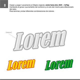 Copiar y pegar nuevamente el Objeto original y enviar hacia atrás (Shift + AvPág). Cambiarle el grosor (aumentarlo) del contorno y el colo del mismo para diferenciarlo del resto.Para terminar, probar diferentes combinaciones de colores.