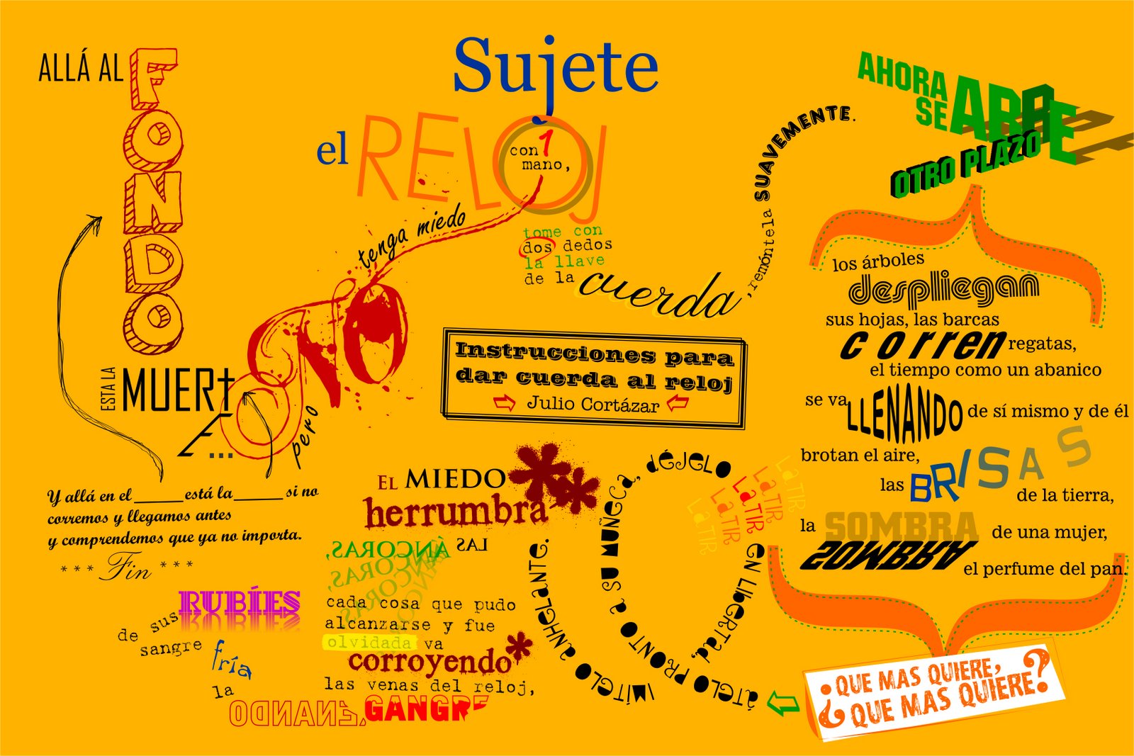 Esto es un boceto de la propuesta que estoy haciendo sobre Instrucciones para dar cuerda al reloj, de Julio Cortázar. Todavía hay mucha confusión y estoy solucionando eso. Será actualizada dentro de unos días.
