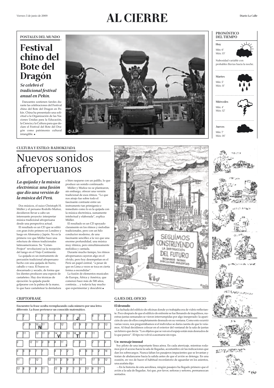 En este trabajo práctico había que hacer la portada, una página impar, la doble página o página central y la contratapa del diario. Yo tomé el diario La Calle.