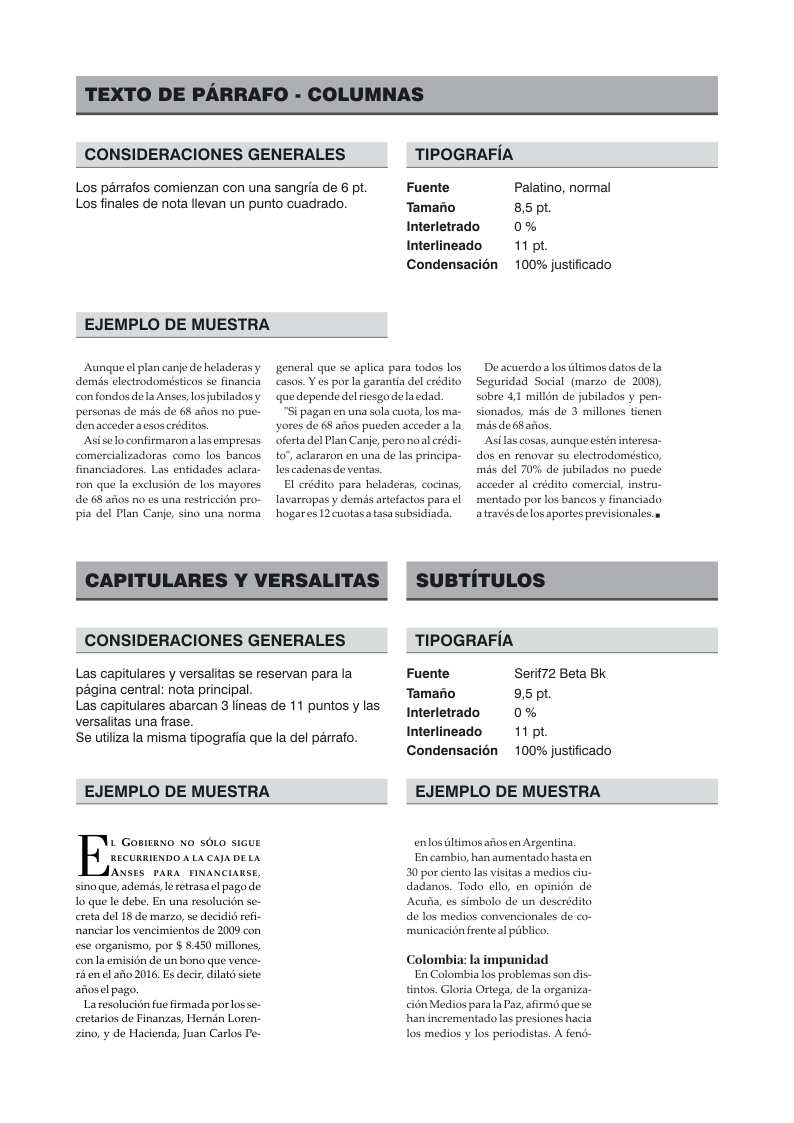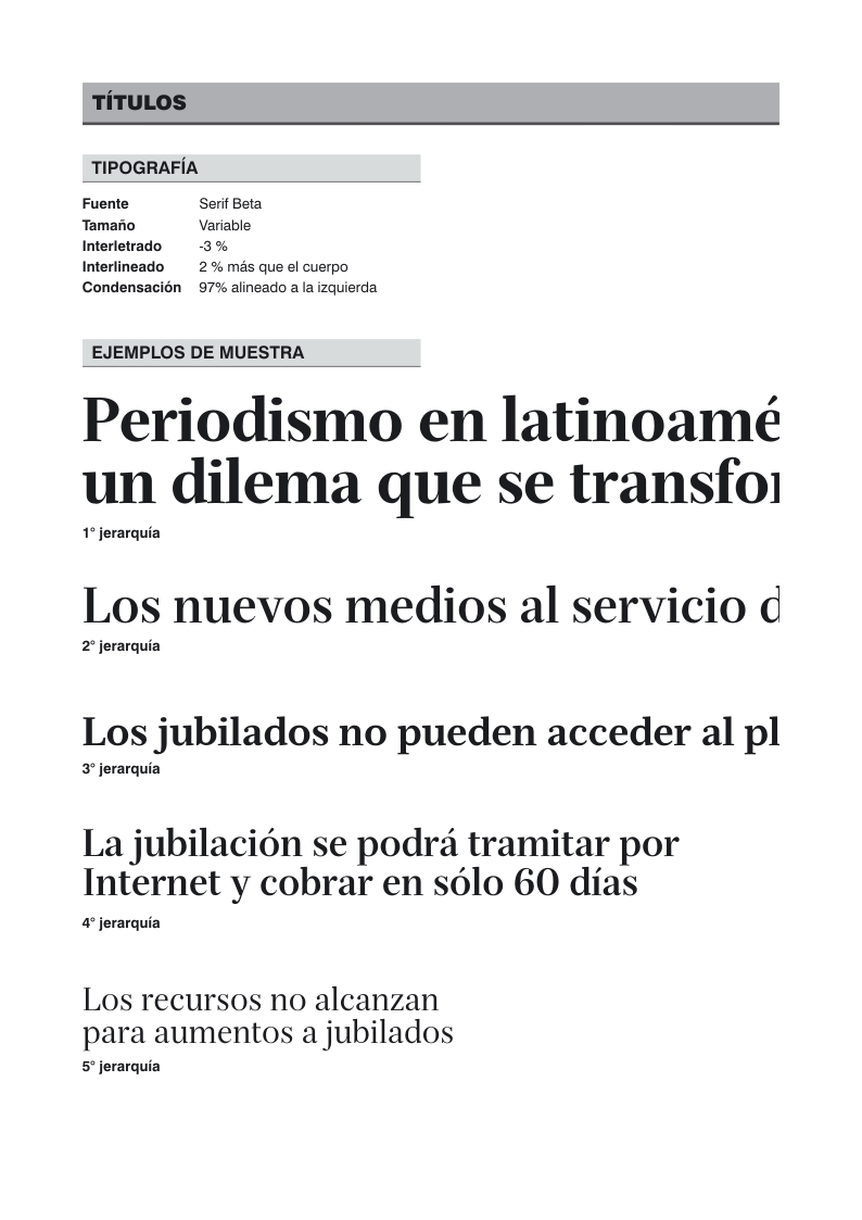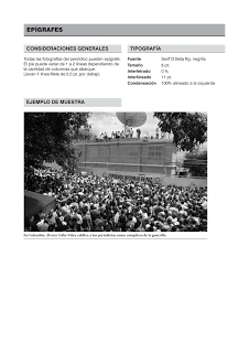 Las Hojas de Especificaciones Técnicas son una guía de los usos de estilos de las tipografías e imágenes. En ella constan los usos de la cuadrícula, el tamaño de los títulos y cuántas columnas va a ocupar, etc. En teoría y alguien toma la HET debería saber hecer el diario.