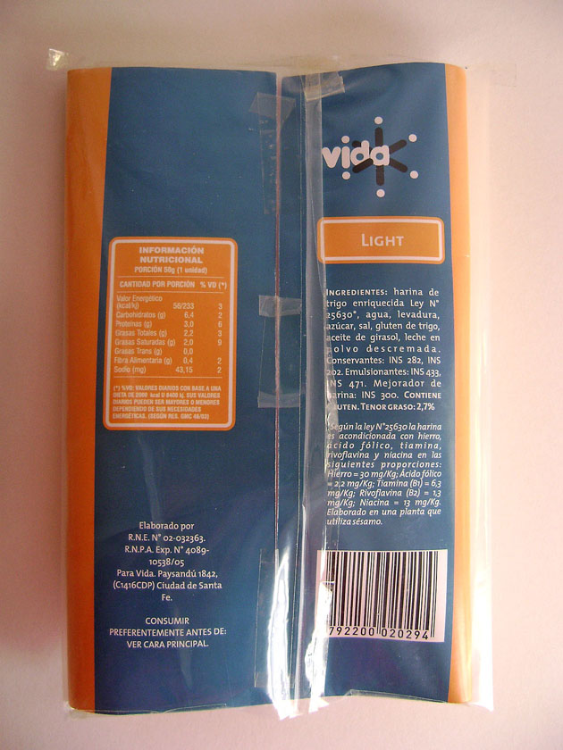 Sistema de packaging para el rubro panificación, para una marca blanca de fantasía denominada Vida. El sistema está compuesto de 10 piezas distribuidas de la siguiente manera:3 panes lactales (lacteado, light y para celíacos), 3 grisines (saborizado, light y para celíacos),1 pan para hamburguesas con sésamo y 3 budines (marmolado, chocolate y un estuche especial para Navidad).