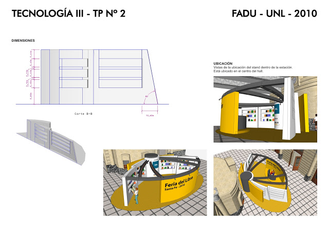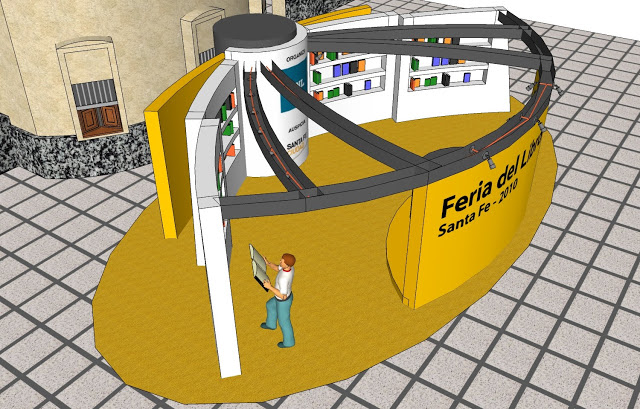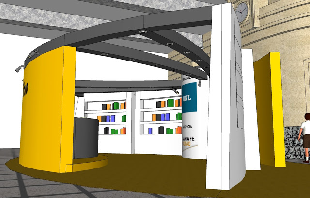 Este es un stand diseñado para promoción y venta de merchandising y/o productos. Está ubicado en el hall de la estación de ferrocarril Belgrano de la ciudad de Santa Fe. El modelo 3D lo hice en Google SketchUp. Puedes ver el proceso previo en esta entrada.