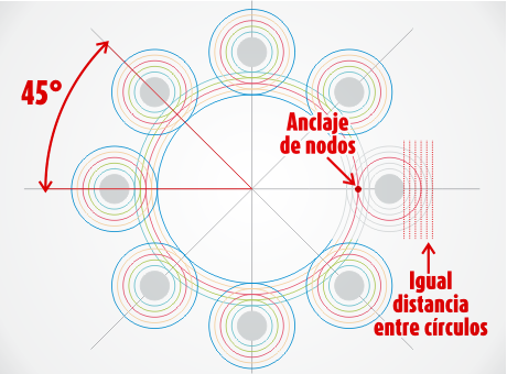 Creación de la estructura base: se hacen la cantidad necesaria de círculos (en este caso 5) para establecer los carriles de flujo.