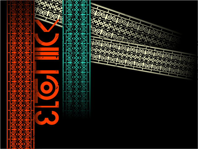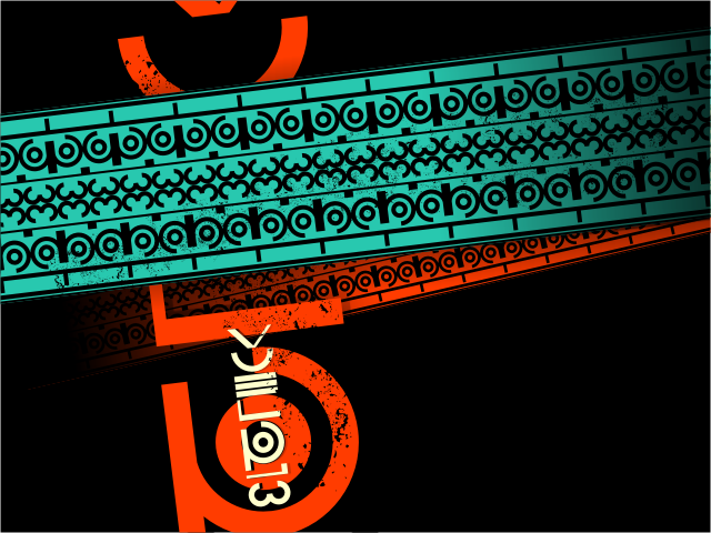 Diferentes aplicaciones de la trama y el logotipo. La técnica utilizada es el vector, con detalles grunge realizador con la misma técnica vectorial. Las sombras permiten dar profundidad. Los colores elegidos son el naranja oscuro, el verde, el celeste, el amarillo desaturado y el negro. Este último se aplica únicamente en el fondo.