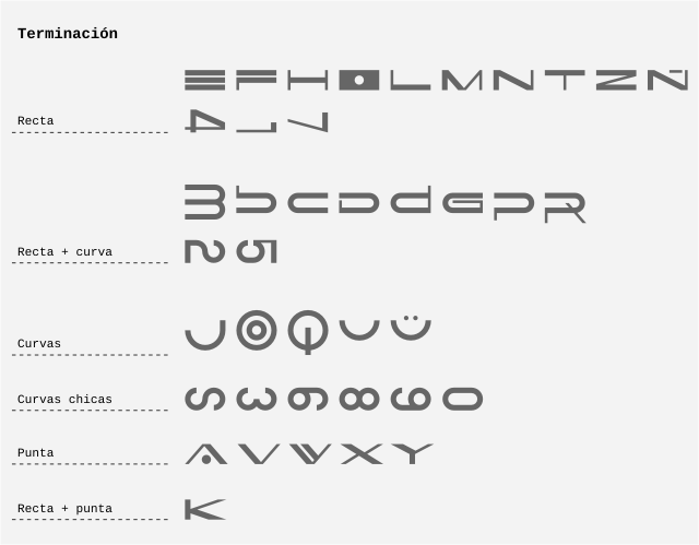 A partir entonces de solo estas letras y números se pasó a la etapa de diseñar el resto de los caracteres para completar la tipografía.