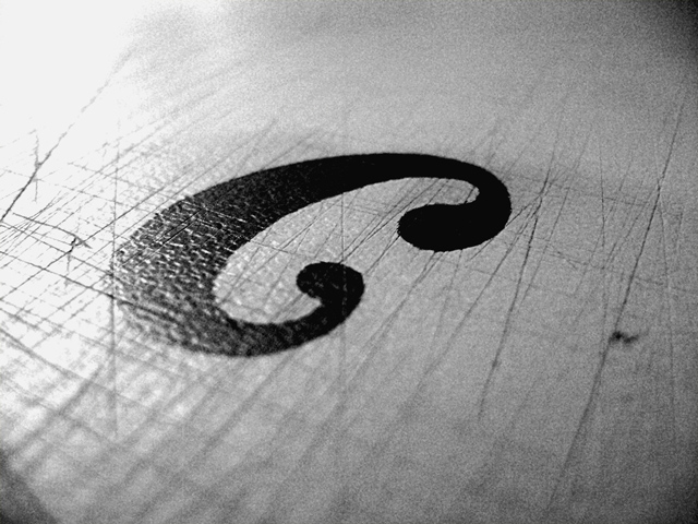 Dibujada inicialmente sobre mi escritorio, la letra C fue tomando forma con cada pasada de lápiz hasta que finalmente quedó plasmada con tinta.