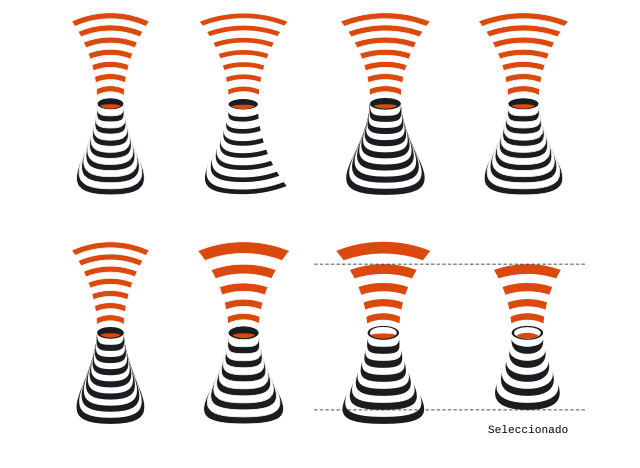 La búsqueda continuó por probar diferentes variables de formas tanto del humo naranja como del propio volcán negro. Diferentes versiones del volcán sirvieron para definir la versión definitiva.