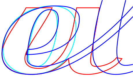 Para terminar el último día del año 2012 quiero dedicar este post para mostrar las letras —algunas— del nombre del nuevo logotipo de Vuelo 213. En la imagen aparecen la superposición de las letras «u» (rojo), «e» (azul) y «o» (cian). Lo que quiero señalar son las semejanzas y diferencias entre cada una de estas tres letras. Por lo pronto habrá que esperar un tiempo para conocer más detalles del nuevo logo de este blog.