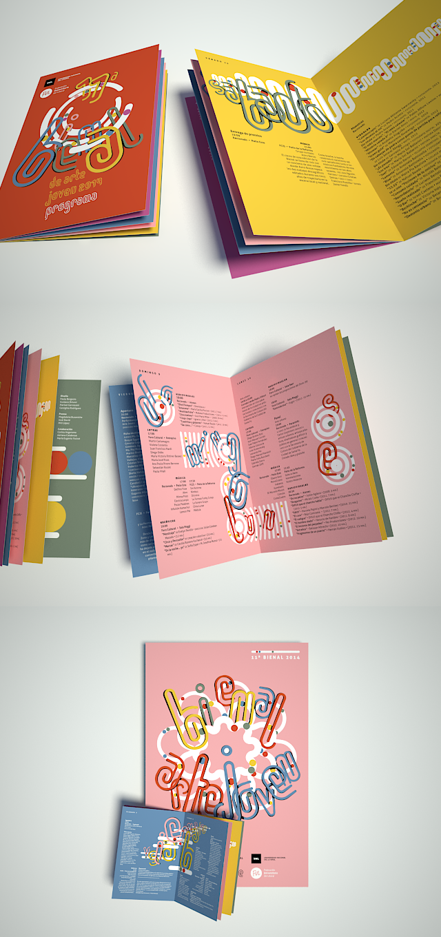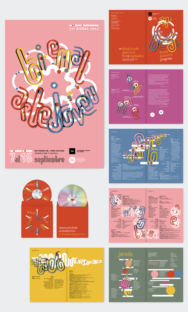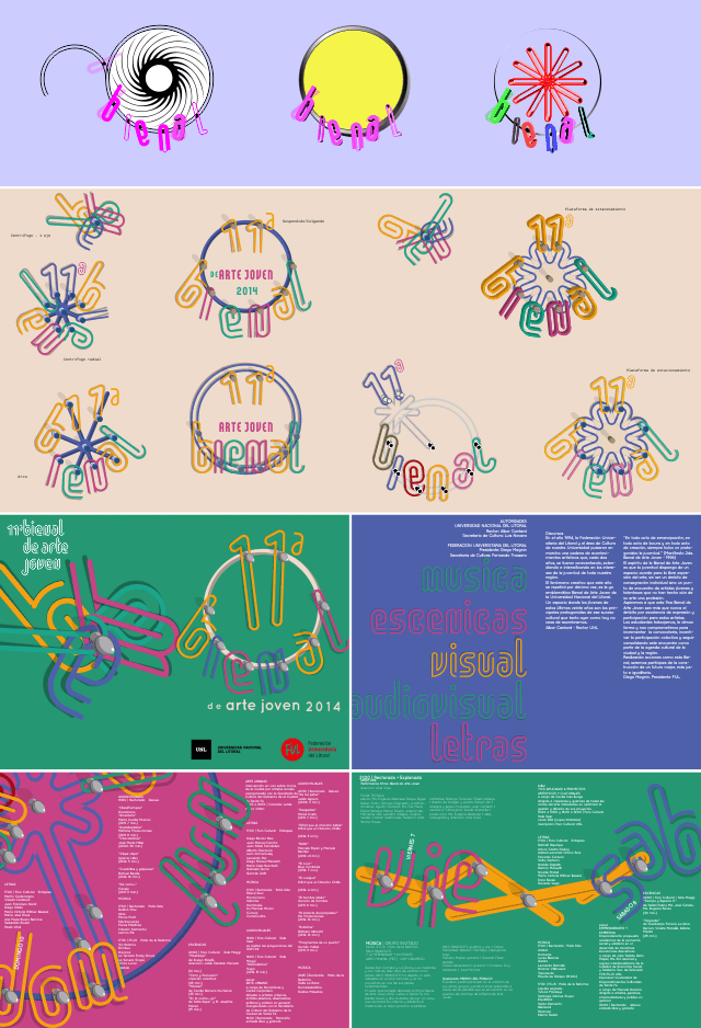 La siguiente es una propuesta de identidad visual para la 11ª Bienal de Arte Joven 2014 (de la ciudad de Santa Fe). Las piezas a desarrollar fueron un afiche (40×60 cm), un folleto díptico, el cual contiene la programación (3 pliegos de 30×22 cm), y un remera.