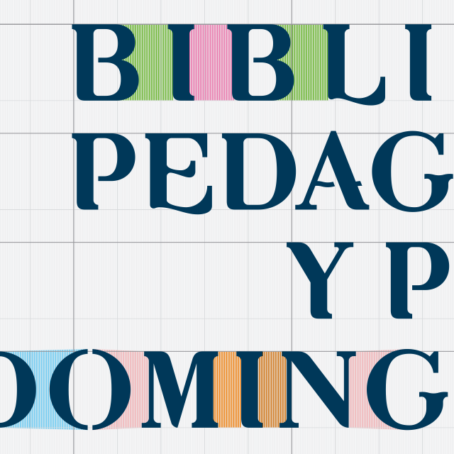 Se diseño una tipografía específicamente para usar en los soportes de comunicaciones de la institución: Biblio14. Esta fuente creada ad hoc está compuesta exclusivamente por letras mayúsculas y posee una única variable de peso (regular), de proporción (normal) y de dirección (redonda), con una modulación de los trazos de 3,5:1 (relación de anchura entre finos y gruesos). En la imagen inferior se muestra el set completo.