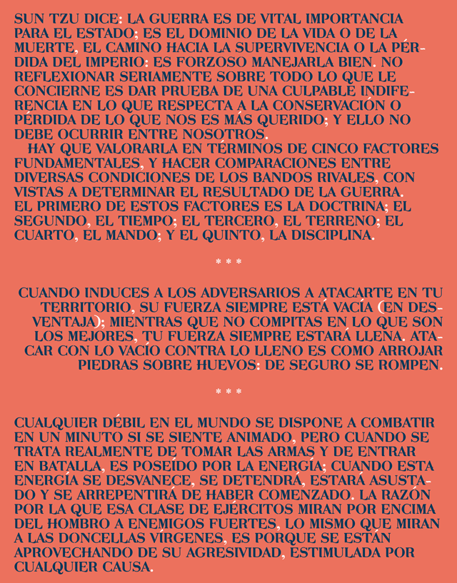 Las letras “O”, que en el plano semántico se convierten en dos paréntesis, son utilizadas como elementos gráficos que incluyen en su interior un signo que actúa como indicio al mundo de los libros. Los parentesis en sí no son el centro de la propuesta conceptual, sino lo que ocurre dentro de ellos; esto es, las “referencias” incluidas en sus interiores que simulan los distintos signos ortográficos (de puntuación y auxiliares) que intervienen en los párrafos de un libro real. Estos signos se aplican en un color distinto al resto del texto, para que resalten en la pieza de diseño. Lo que se plantea con esto es mostrar la estructura que subyace a todo enunciado, aquella que permite dar coherencia al texto escrito, y con ello señalando su función ortográfica.
