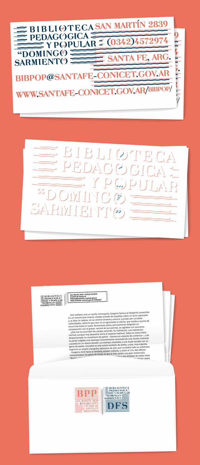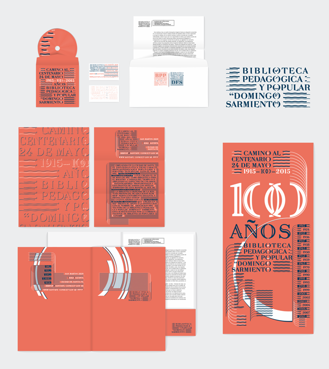 Sistema de identidad propuesto para la Biblioteca Pedagógica y Popular “Domingo F. Sarmiento” de la ciudad de Santa Fe, con motivo de la celebración de su primer centenario, a cumplirse en mayo de 2015. El objetivo de este trabajo era crear una marca con sus respectivas aplicaciones.