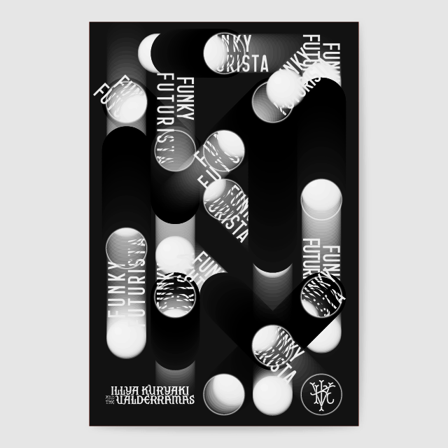 Poster y motion graphics inspirados en el tema musical Funky futurista del dúo IKV (Illya Kuryaki and the Valderramas).