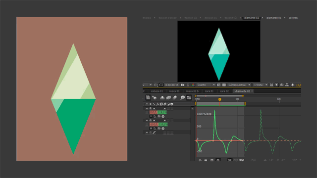 Las curva del gráfico muestra la diferencia del valor «escala», en el software After Effects.