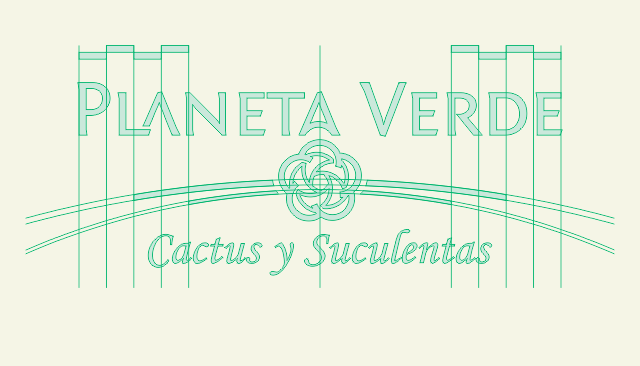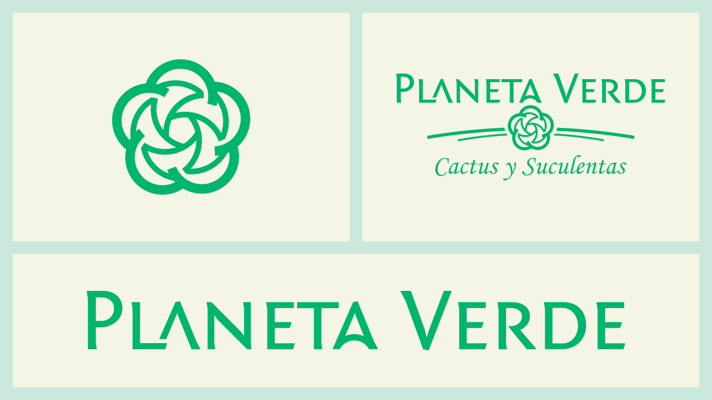 El texto “Planeta Verde” se compone con la fuente tipográfica Fontin Sans SC, la cual fue modificada y adaptada para esta ocasión. Para la leyenda “Cactus y Suculentas” se utiliza la Monotype Corsiva.