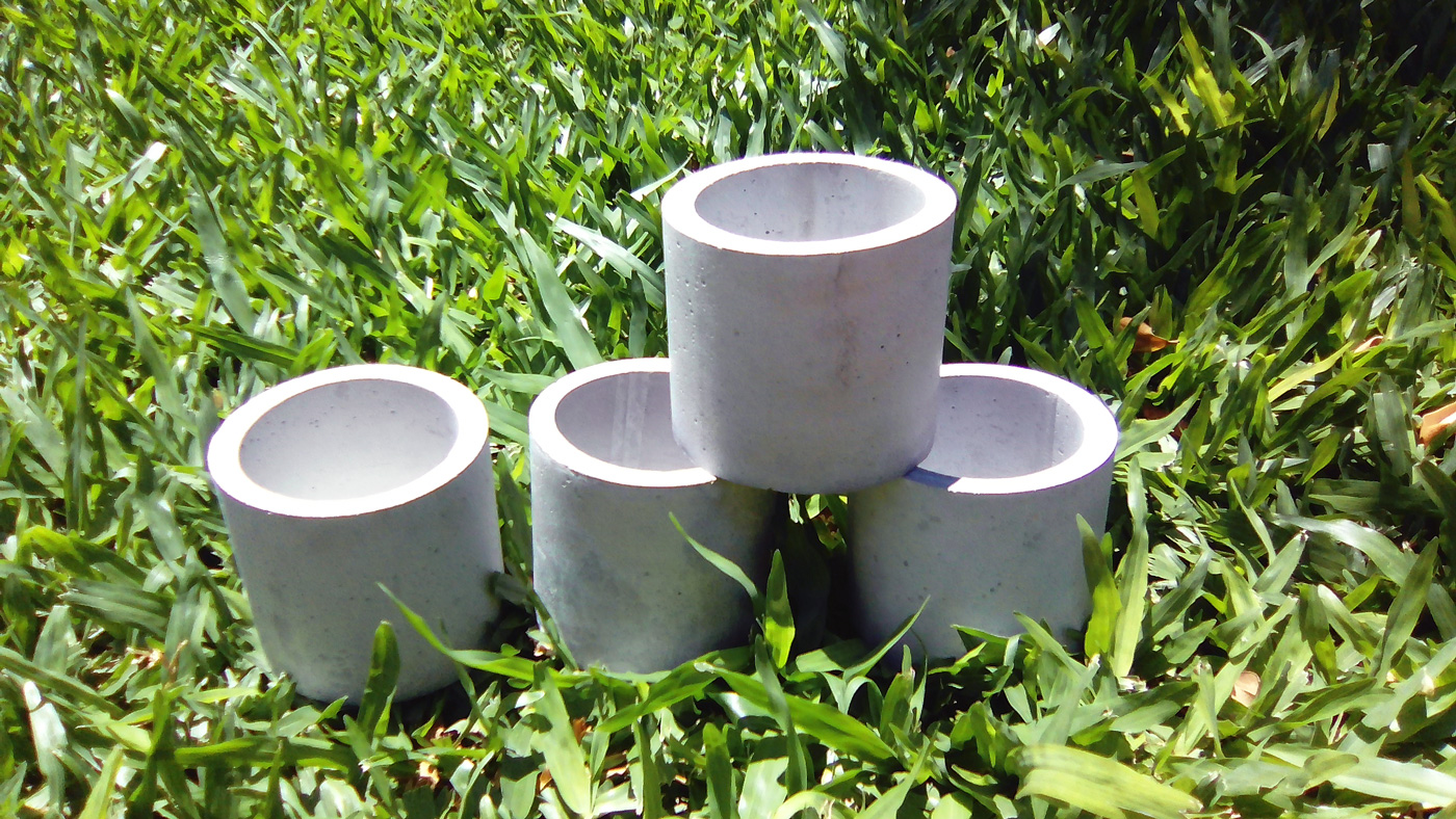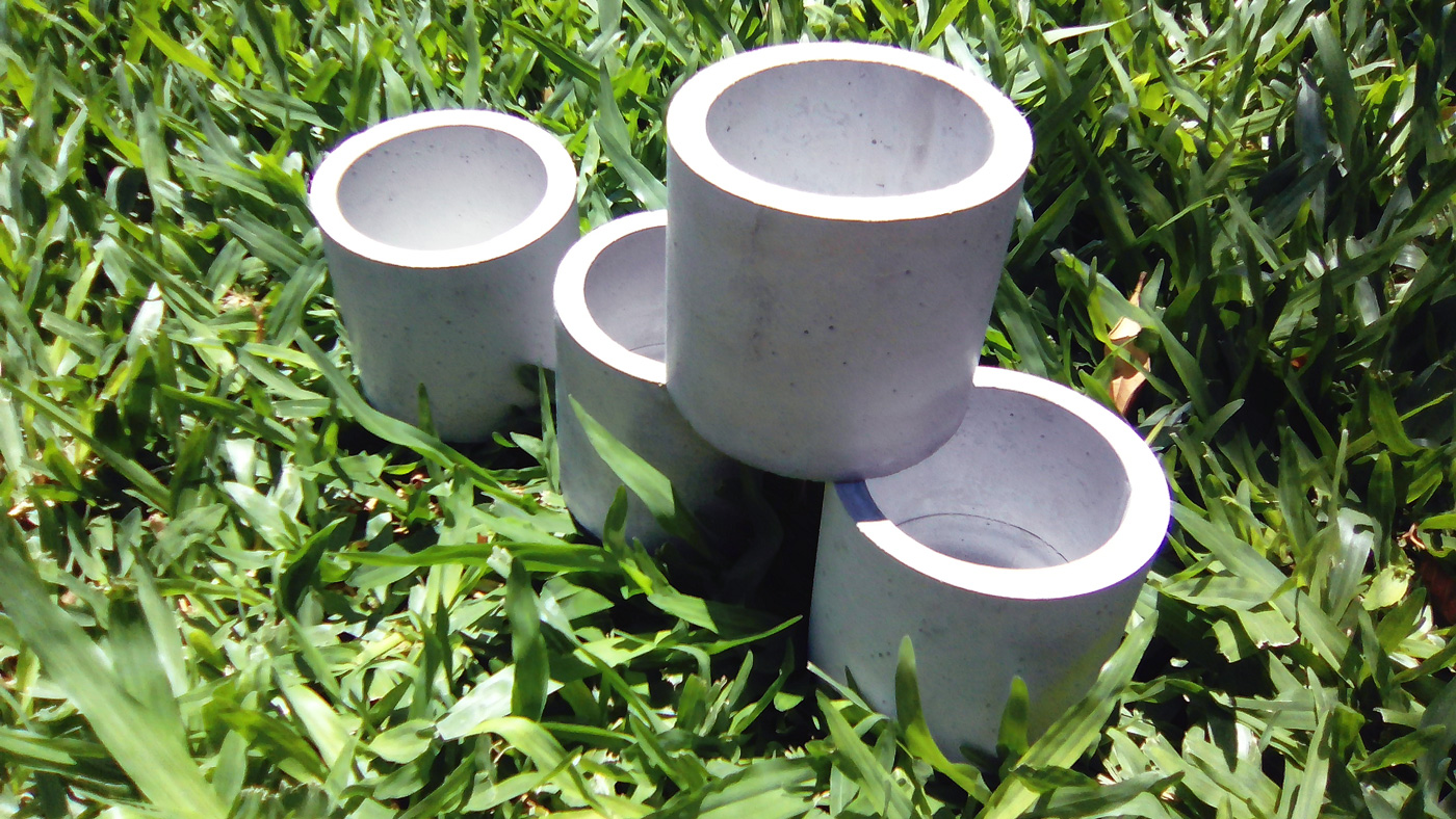 Se diseñó una maceta de forma cilíndrica con las siguientes medidas: 8,5 cm de diámetro externo, 7 cm de diámetro interno y 8 cm de altura. Los materiales de construcción utilizado fueron cemento, arena y agua.